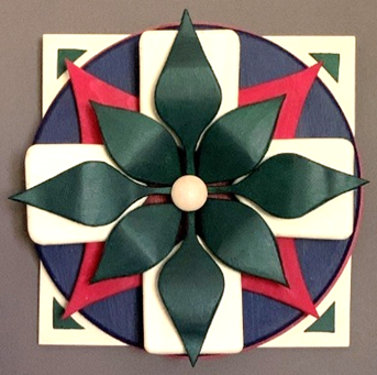 Cedar, glass, flowers, and acrylic paint